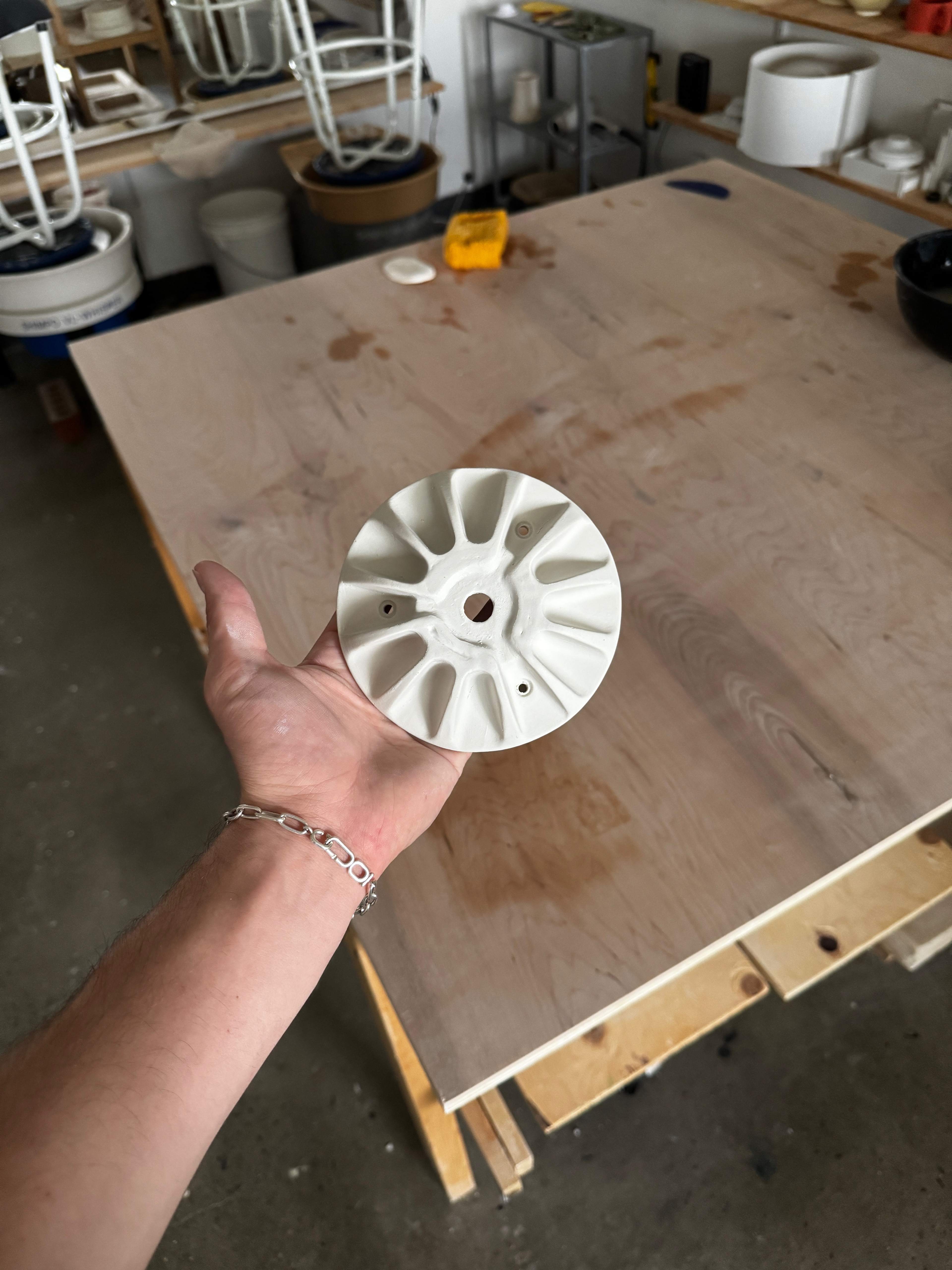 Après plusieurs années de recherche sur les techniques de moulage et d'étude des propriétés complexes de ce matériau délicat, nous avons cherché à cultiver dans un seul objet les compétences, les intuitions et les visions de notre studio. Cette pièce incarne l'intersection disciplinaire à laquelle se situe ZAP/STUDIO, combinant le savoir-faire tacite de l'artisanat avec le vocabulaire technique précis du design industriel.